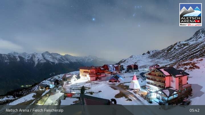 Webcam Aletsch Arena: Blick auf die Fiescheralp, 2,220 m