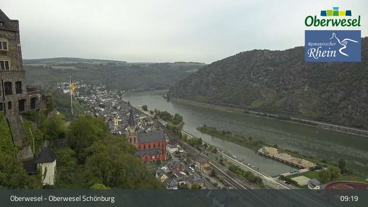 Die Webcam blickt über die Schönburg im rheinland-pfälzischen Oberwesel auf den Rhein. Die Höhenburg stammt aus dem 12. Jahrhundert.