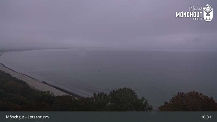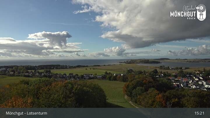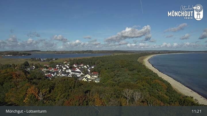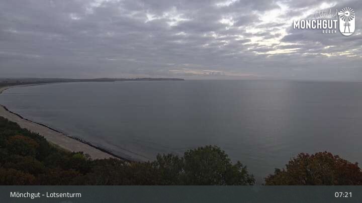 Die Webcam ist am Lotsenturm bei Thiessow positioniert und zeigt den Blick auf die Halbinsel Mönchgut, die zu Rügen gehört und an der Ostsee liegt.