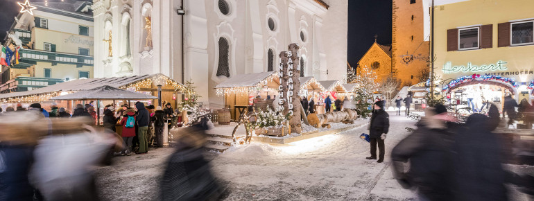 Jedes Jahr von Ende November bis Anfang Januar kannst du in Innichen die Dolomiten Weihnacht erleben. Der weihnachtliche Duft von gebrannten Mandeln und Glühwein zieht durch die Straßen der Marktgemeinde im Südtiroler Pustertal. Hier erwarten dich viele traditionelle kulinarische Spezialitäten und Leckereien.