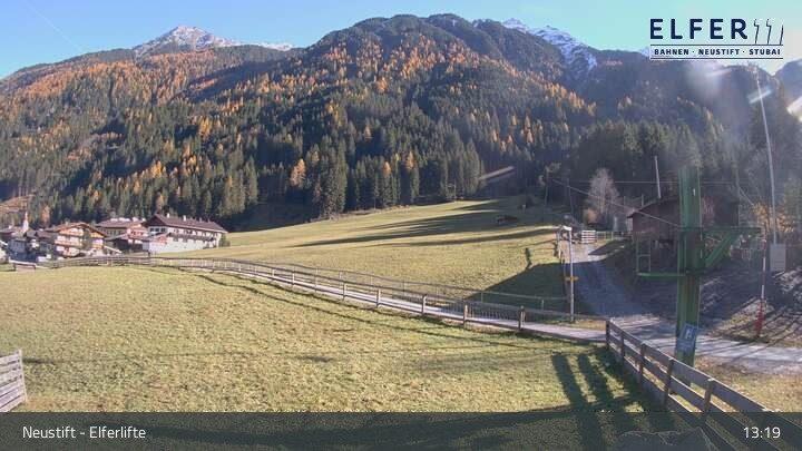 Die Webcam befindet sich in Krössbach bei Neustift - Hochstubai und zeigt das Übungsland des Skigebiets.
