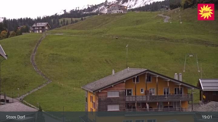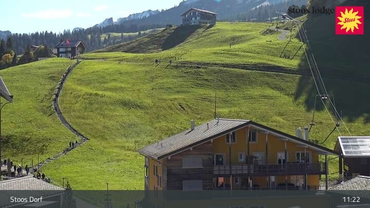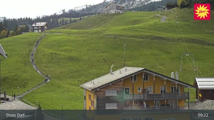 Blick auf das autofreie Bergdorf Stoos im Kanton Schwyz am Vierwaldstättersee.