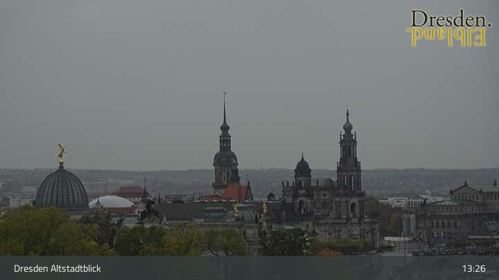 Die Kamera befindet sich am Hotel am Terrassenufer in Dresden und blickt auf die Altstadt und die Elbe.