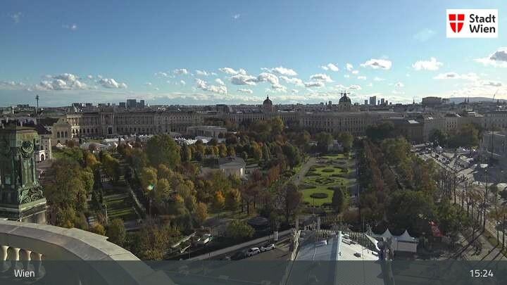 Die Webcam bietet dir einen Rundumblick über den ersten Wiener Bezirk. Du siehst das Burgtheater und das Rathaus.