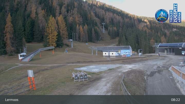 Die Webcam befindet sich an der Bergstation des Hochmoos Express in Lermoos und blickt auf die umliegenden Alpen.