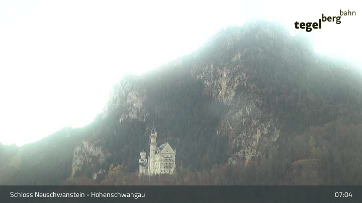 Die Kamera befindet sich am Schloss Hohenschwangau und schwenkt vom Schloss Neuschwanstein zum Museum der Bayerischen Könige.