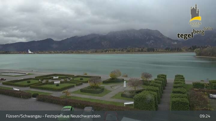Die Webcam blickt auf den Garten von Ludwigs Festspielhaus in Füssen am Forggensee.