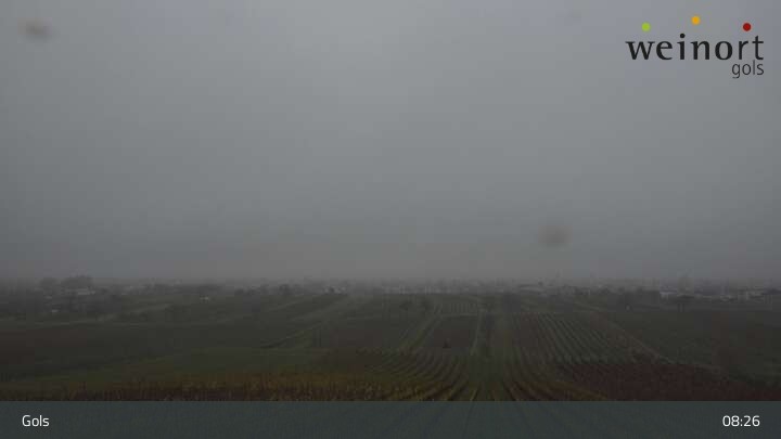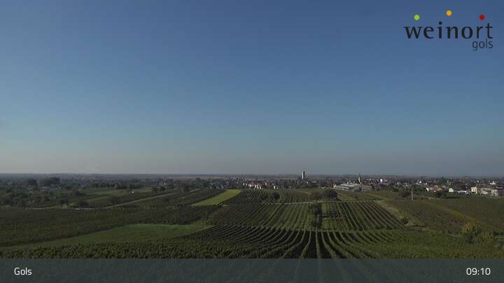 Über die Weinberge hinweg blickt die Webcam auf den Ort Gols im Burgenland.