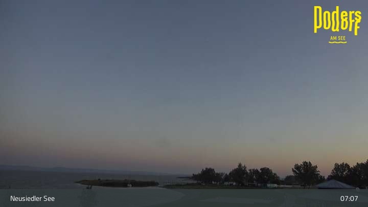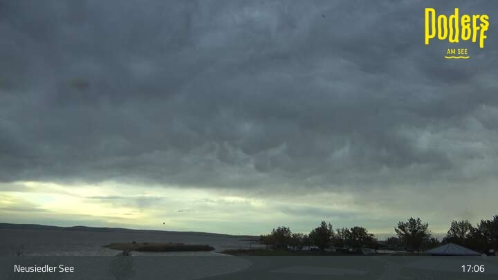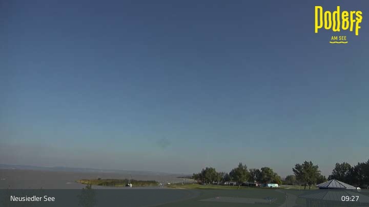 Vom Ort Podersdorf aus blickst du auf den Neusiedler See im österreichischen Bundesland Burgenland.