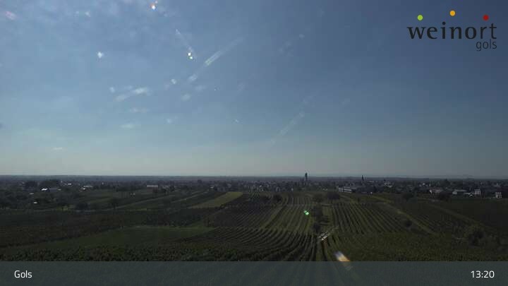 Über die Weinberge hinweg blickt die Webcam auf den Ort Gols im Burgenland.