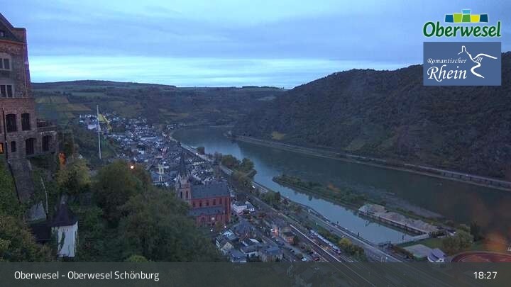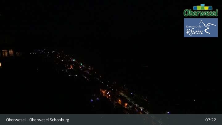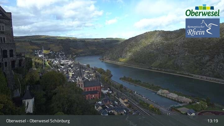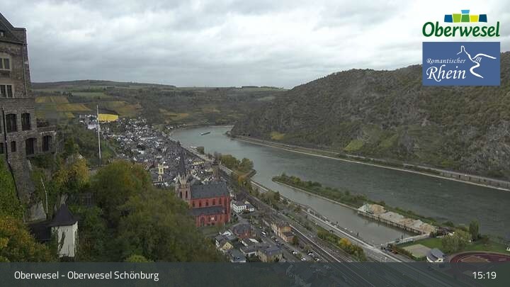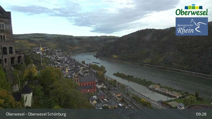 Die Webcam blickt über die Schönburg im rheinland-pfälzischen Oberwesel auf den Rhein. Die Höhenburg stammt aus dem 12. Jahrhundert.