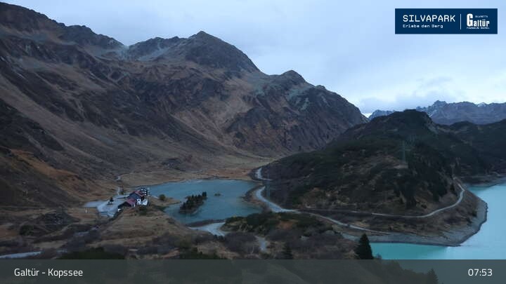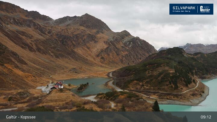 Hier siehst du den Stausee Kops in Galtür, der in den österreichischen Alpen im Bundesland Vorarlberg in der Silvretta-Gruppe liegt.