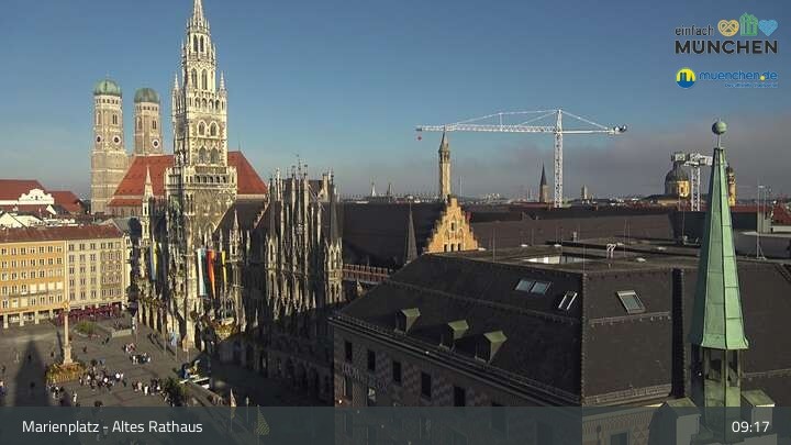 Die Webcam blickt vom Alten Rathaus auf den Marienplatz, der zentrale Platz der Münchener Innenstadt.