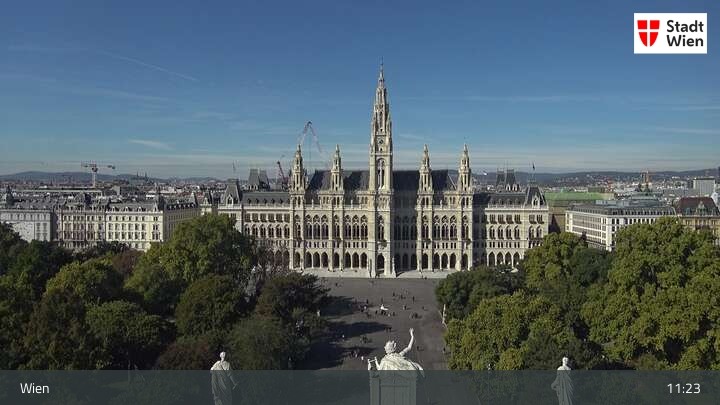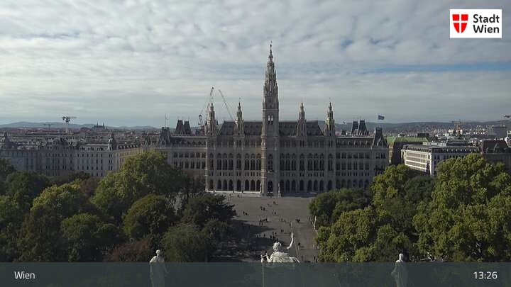 Die Webcam bietet dir einen Rundumblick über den ersten Wiener Bezirk. Du siehst das Burgtheater und das Rathaus.