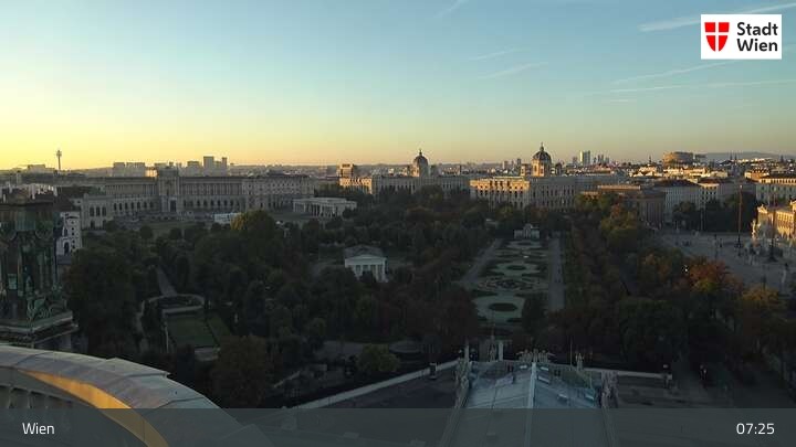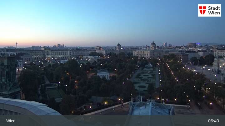 Die Webcam bietet dir einen Rundumblick über den ersten Wiener Bezirk. Du siehst das Burgtheater und das Rathaus.