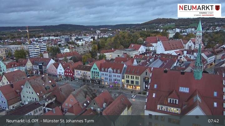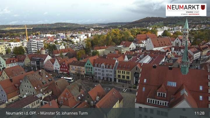 Die Webcam befindet sich am Turm der St. Johannes Kirche in Neumarkt in der Oberpfalz und zeigt einen tollen Panoramablick über die Stadt.