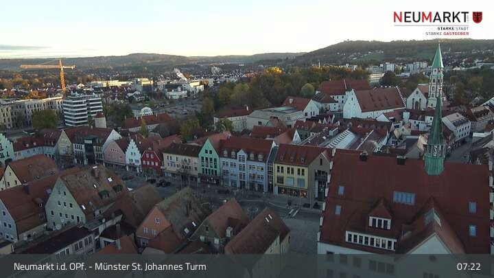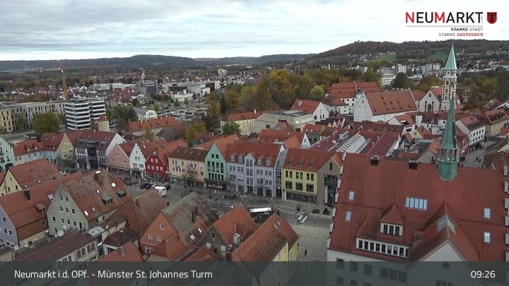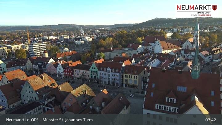 Die Webcam befindet sich am Turm der St. Johannes Kirche in Neumarkt in der Oberpfalz und zeigt einen tollen Panoramablick über die Stadt.