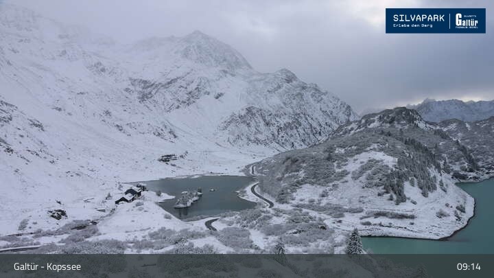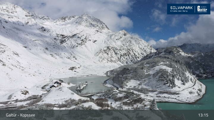 Hier siehst du den Stausee Kops in Galtür, der in den österreichischen Alpen im Bundesland Vorarlberg in der Silvretta-Gruppe liegt.