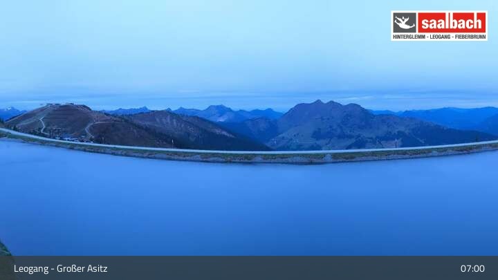 Blick vom Großen Asitz in Leogang auf die umliegende Bergwelt.