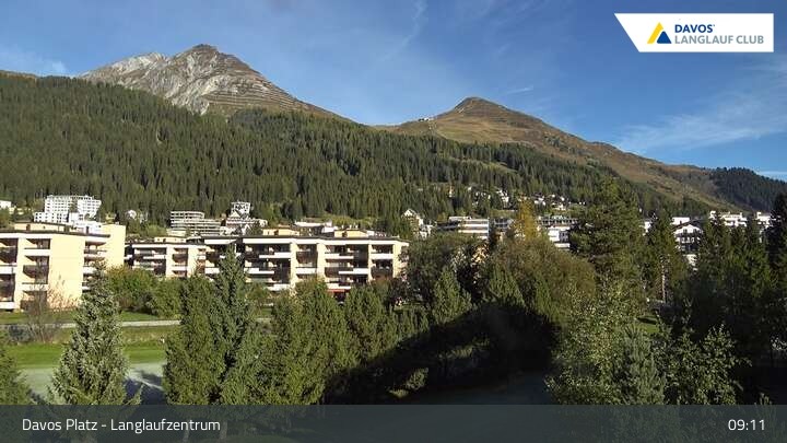 Blick auf den Golfplatz in Davos. Im Winter befindet sicher hier das Langlaufzentrum.