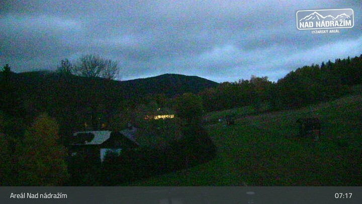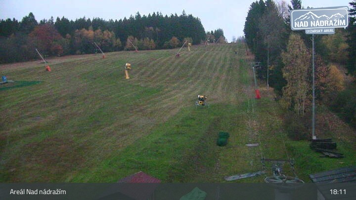 Die Webcam zeigt die Skilifte im Areal Nad nádražím bei Železná Ruda nahe der deutschen Grenze.