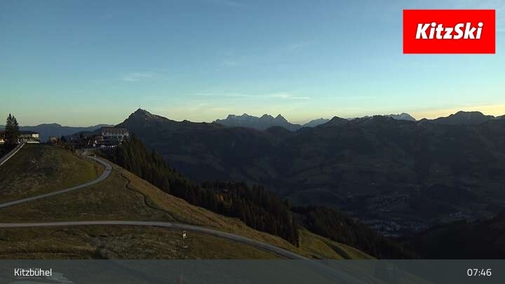 Die Webcam zeigt der den Blick vom Berghaus Walde am Hahnenkamm. Gut erkennen kann man unter anderem die Bergstation der Hahnenkammbahn.