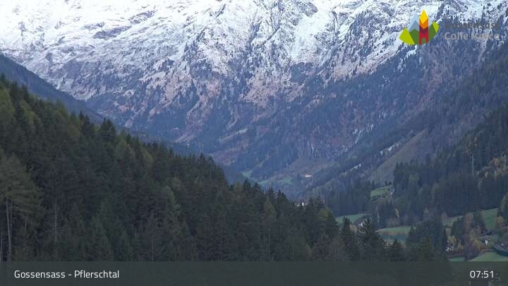 Die Kamera zeigt die Kirche Parrocchia San Valentino in Gossensass im Eisacktal.