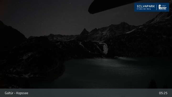 Hier siehst du den Stausee Kops in Galtür, der in den österreichischen Alpen im Bundesland Vorarlberg in der Silvretta-Gruppe liegt.