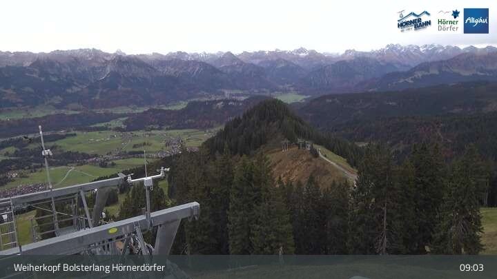 Die Kamera bietet einen tollen Ausblick von der Bergstation der Weiherkopf-Sesselbahn bei Bolsterlang im Allgäu.