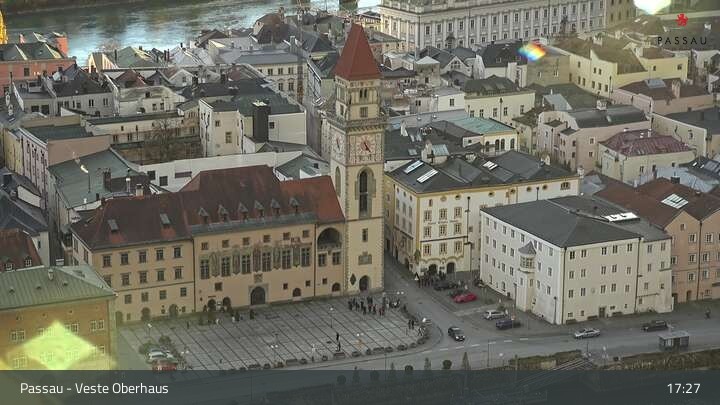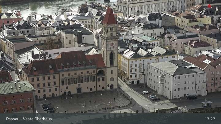 Die Webcam zeigt einen tollen Panoramablick von der Veste Oberhaus auf die Donau und die Altstadt von Passau. Neber der herrschaftlichen Burgfassade sieht man sehr gut die Landzunge zwischen Donau und Inn, auf der die Altstadt mit ihren denkmalgeschützten Häusern liegt. Gut zu erkennen sind unter anderem die Ortspitze am Zusammenfluss der drei Flüsse, das an der Donau liegende Rathaus, der weiße Dom St. Stephan und das erhöhte Kloster Mariahilf in der Innstadt.