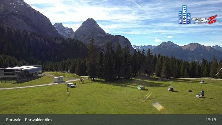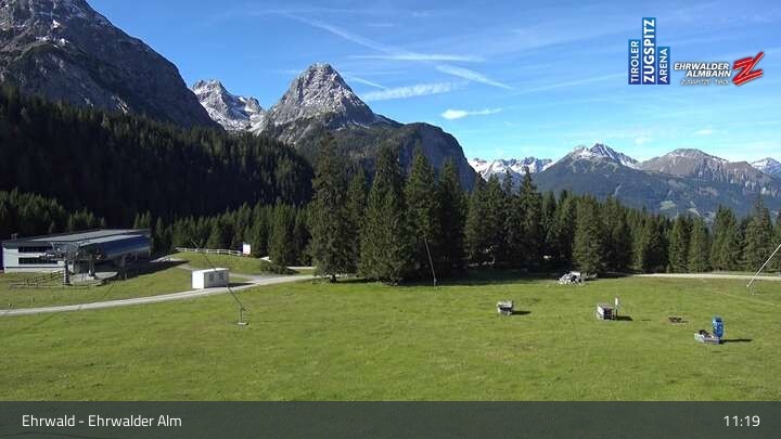 Webcam Sicht auf das Kinderland an der Ehrwalder Alm, 1,491 m
