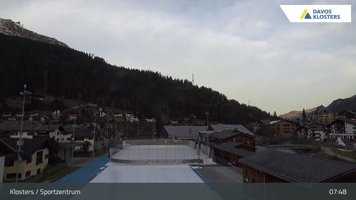 Hier siehst du das Sportzentrum und das Freibad in Klosters