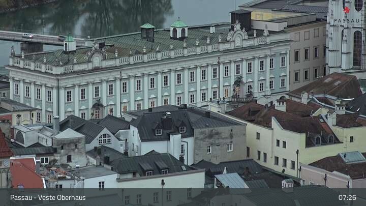 Die Webcam zeigt einen tollen Panoramablick von der Veste Oberhaus auf die Donau und die Altstadt von Passau. Neber der herrschaftlichen Burgfassade sieht man sehr gut die Landzunge zwischen Donau und Inn, auf der die Altstadt mit ihren denkmalgeschützten Häusern liegt. Gut zu erkennen sind unter anderem die Ortspitze am Zusammenfluss der drei Flüsse, das an der Donau liegende Rathaus, der weiße Dom St. Stephan und das erhöhte Kloster Mariahilf in der Innstadt.