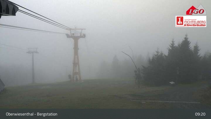 The webcam is located at the top station at the ski resort of Oberwiesenthal Fichtelberg. From there, it looks down upon Oberwiesenthal.