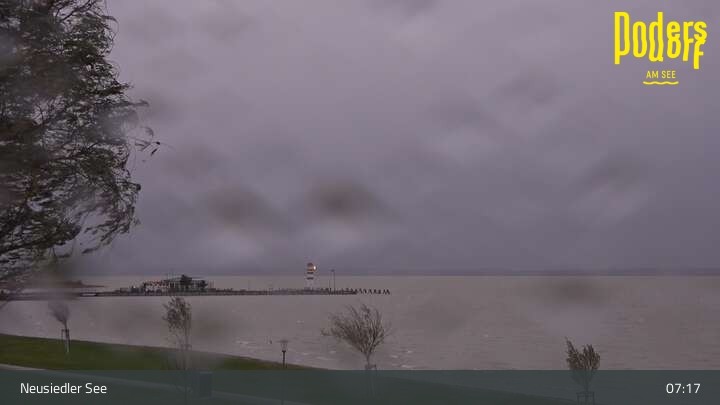 Vom Ort Podersdorf aus blickst du auf den Neusiedler See im österreichischen Bundesland Burgenland.