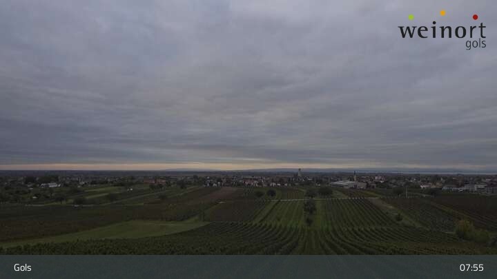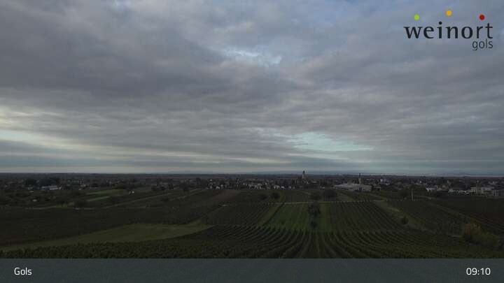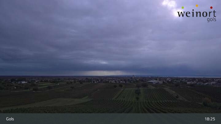 Über die Weinberge hinweg blickt die Webcam auf den Ort Gols im Burgenland.