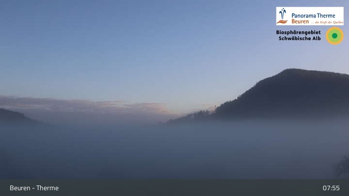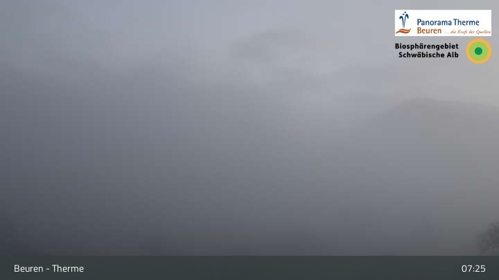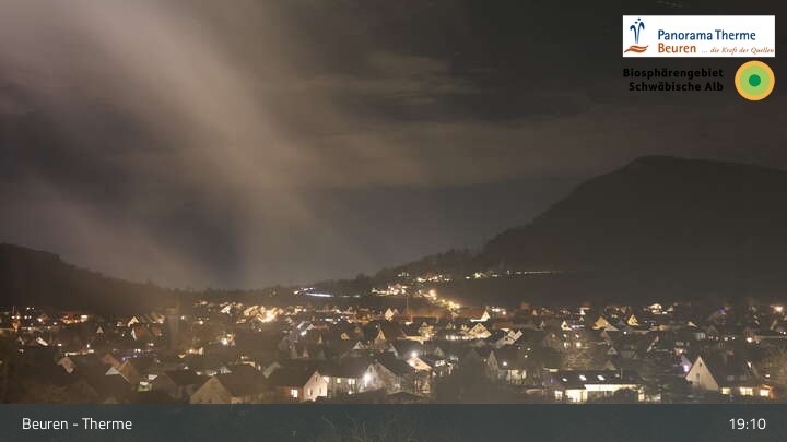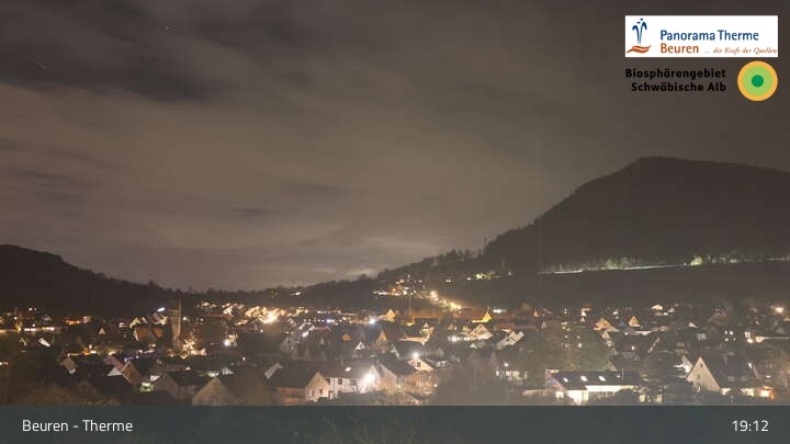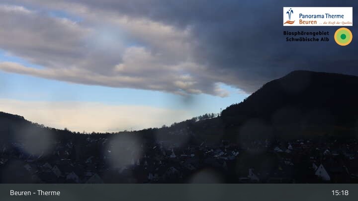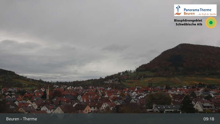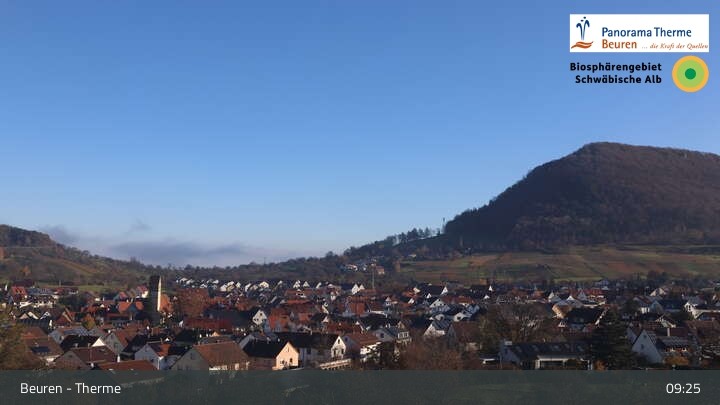 Blick über Beuren in der Schwäbischen Alb. Die Webcam befindet sich in der Panorama Therme Beuren.