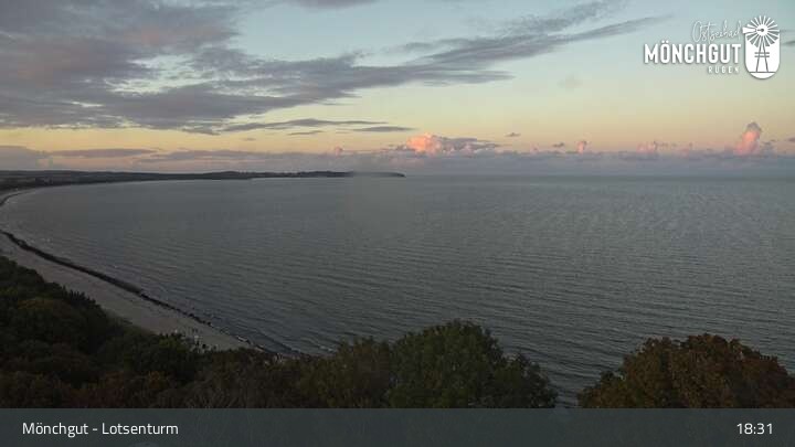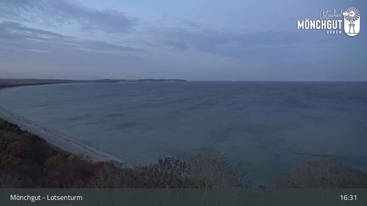 Die Webcam ist am Lotsenturm bei Thiessow positioniert und zeigt den Blick auf die Halbinsel Mönchgut, die zu Rügen gehört und an der Ostsee liegt.