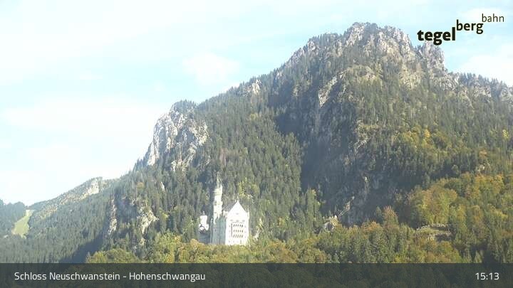 Die Kamera befindet sich am Schloss Hohenschwangau und schwenkt vom Schloss Neuschwanstein zum Museum der Bayerischen Könige.
