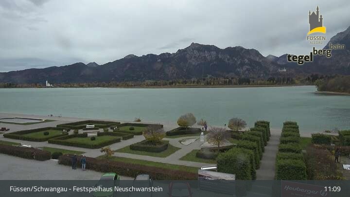 Die Webcam blickt auf den Garten von Ludwigs Festspielhaus in Füssen am Forggensee.