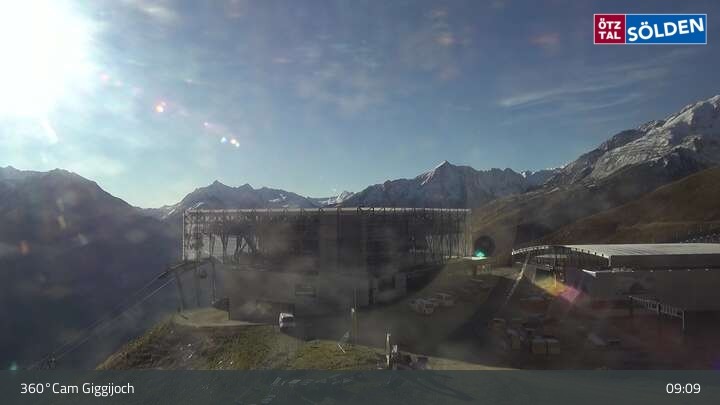 Blick vom Giggijoch auf die Bergbahnen sowie die umliegendeAlpenwelt von Sölden.