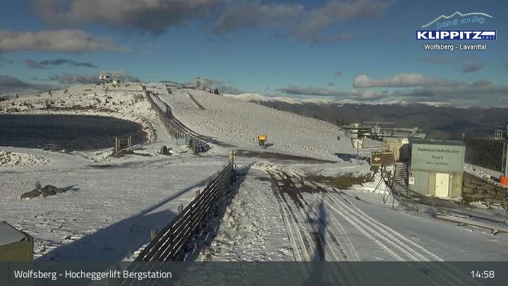 Hier siehst du den Ausblick von der Bergstation Klippitztörl über den Sessellift und die angrenzenden Pisten.