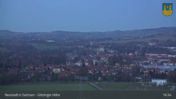 Hier siehst du Neustadt in Sachsen, eine Kleinstadt im Elbsandsteingebirge. Die Webcam befindet sich südlich der Stadt an der Götzinger Höhe.