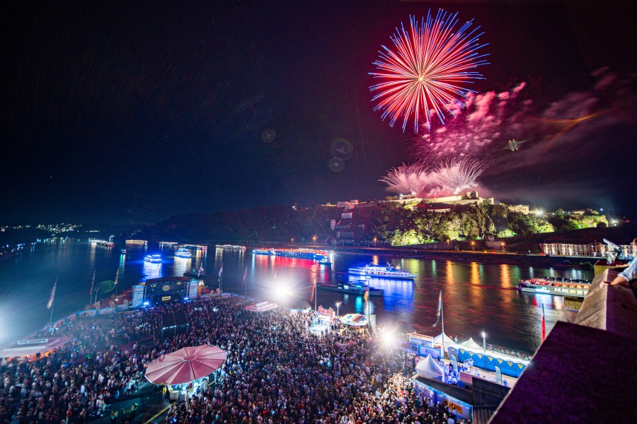 Ein Spaziergang entlang der Rheinanlagen oder eine Fahrt mit der Seilbahn zur Festung Ehrenbreitstein bieten perfekte Möglichkeiten, das Panorama von oben zu genießen. In den Sommermonaten finden am Deutschen Eck regelmäßig Veranstaltungen und Open-Air-Konzerte statt, besonders bekannt ist das spektakuläre "Rhein in Flammen", das jährlich tausende Besucher anzieht. Zudem ist der Ort ein beliebter Ausgangspunkt für Radtouren entlang des Rheins und Schifffahrten auf beiden Flüssen.