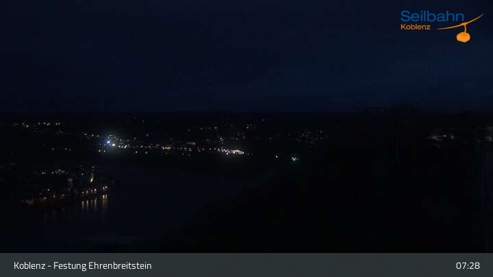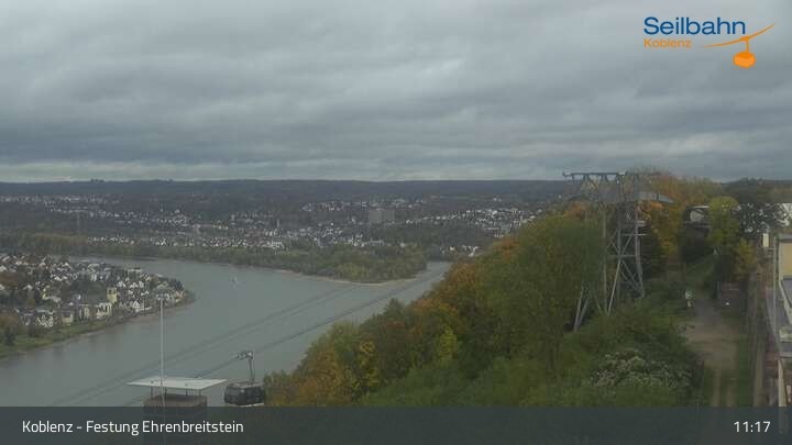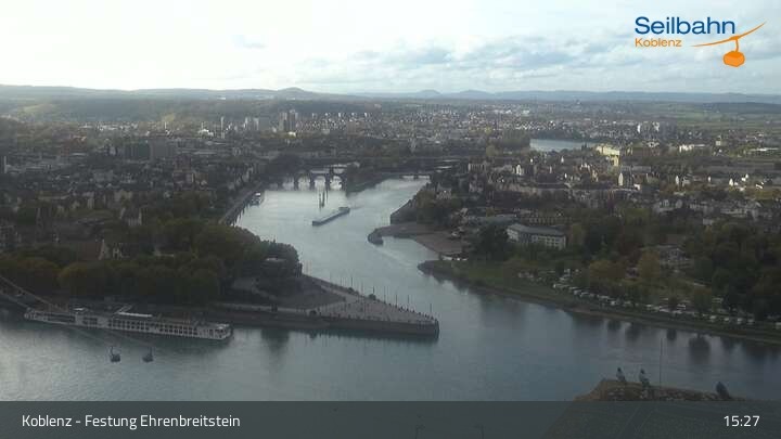 Webcam Koblenz: Blick von der Festung auf Seilbahn und Deutsches Eck, 160 m