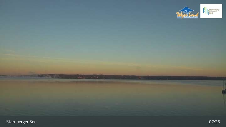 Blick auf den Starnberger See von der Wasserwacht Ammerland in der Nähe von Münsing.