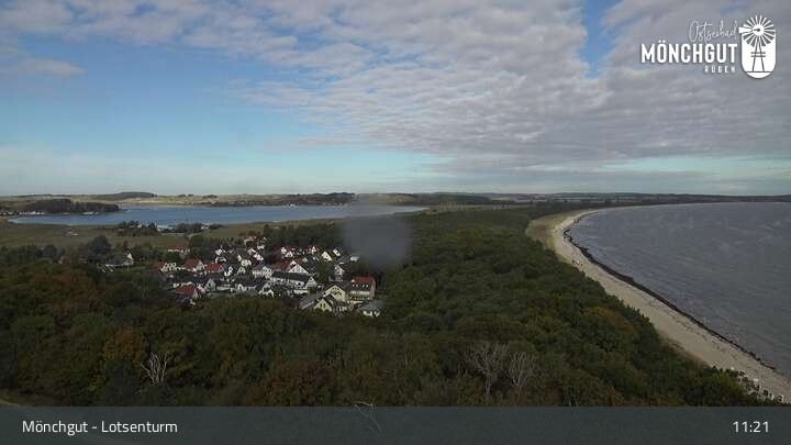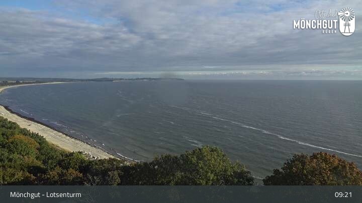 Die Webcam ist am Lotsenturm bei Thiessow positioniert und zeigt den Blick auf die Halbinsel Mönchgut, die zu Rügen gehört und an der Ostsee liegt.