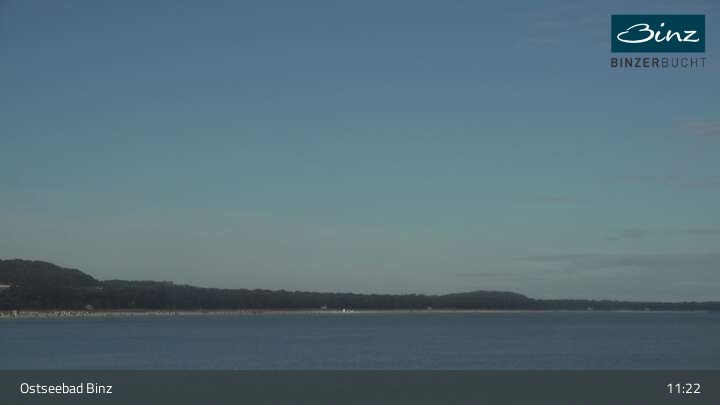 Zu sehen ist die Strandpromenade des Ostseebades Binz. Die Webcam ist auf der Seebrücke Binz positioniert und zeigt unter anderem Kurhaus, Strandpromenade und den Fischerstrand.