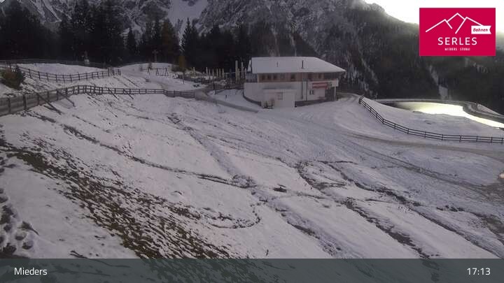 Die Webcam eröffnet den Blick von der Bergstation Koppeneck auf den Hausberg von Mieders, die Serles. Zu sehen sind außerdem das Bergrestaurant Koppeneck mit Kinderspielplatz und der Speichersee.