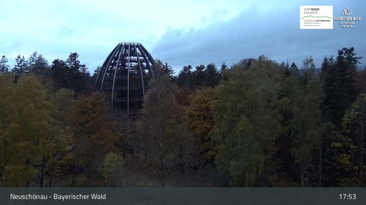 Die Kamera befindet sich in Neuschönau auf dem Dach des Besucherzentrums Hans-Eisenmann-Haus im Nationalparkzentrum Lusen im Bayerischen Wald. Zu sehen ist auch der über 40 Meter hohe Turm des Baumwipfelpfads.